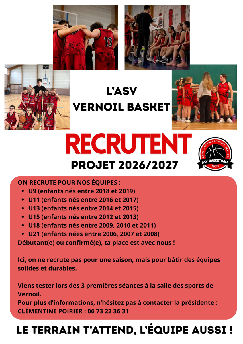 L’ASV Vernoil Basket recrute pour la saison 2026/2027 !
